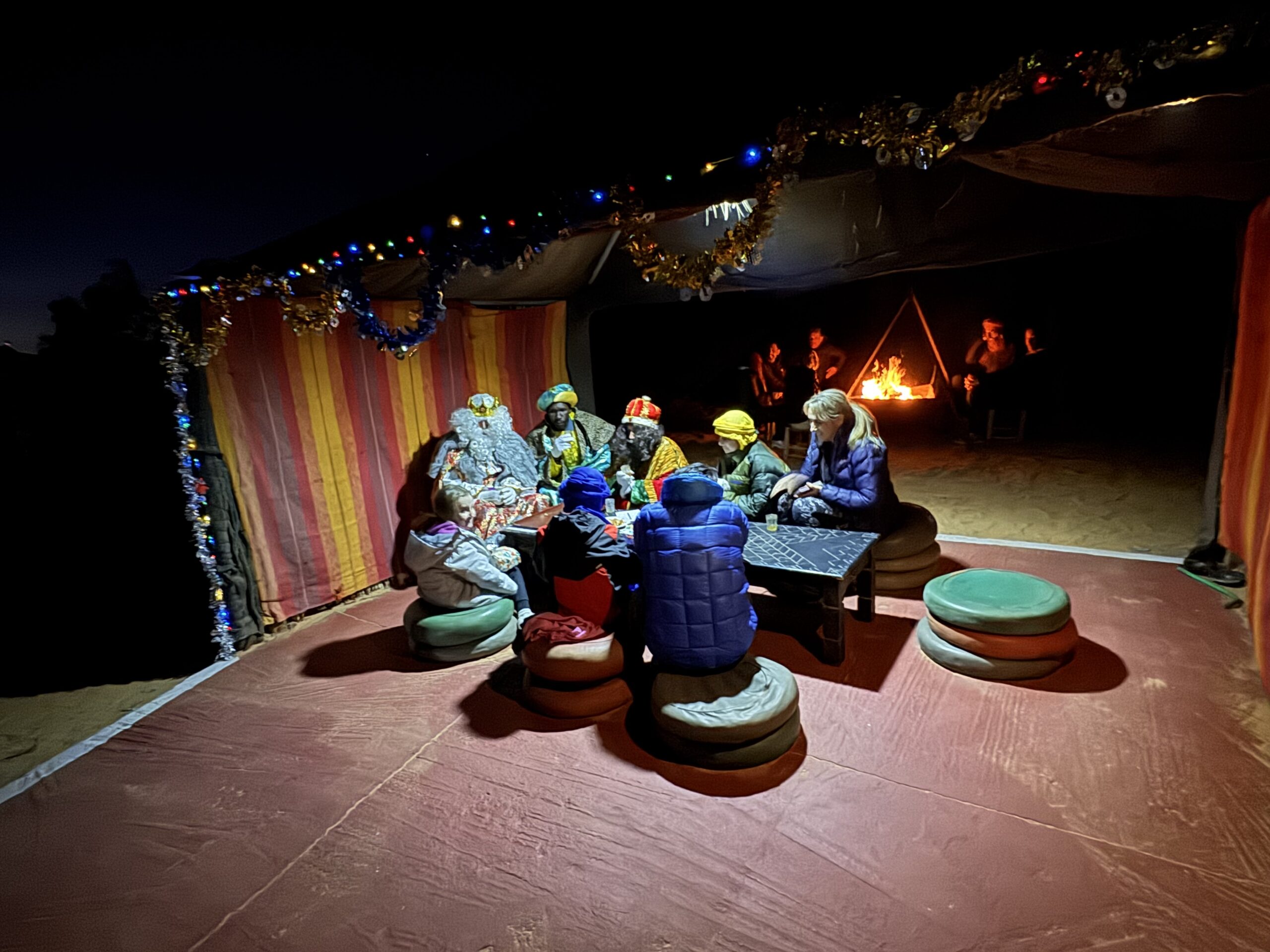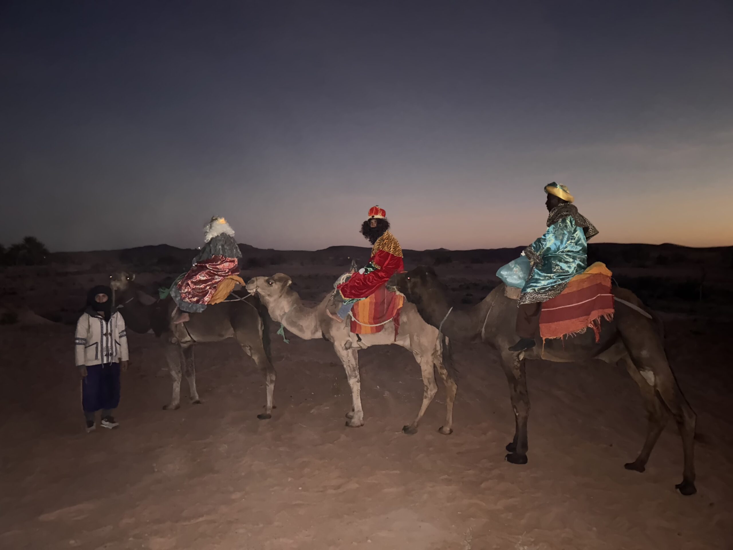 Bajo el cielo estrellado del Sahara, la emoción de ver a los Reyes Magos llegar en camellos y hablar directamente con ellos se convierte en un recuerdo que quedará para siempre en el corazón de grandes y pequeños.