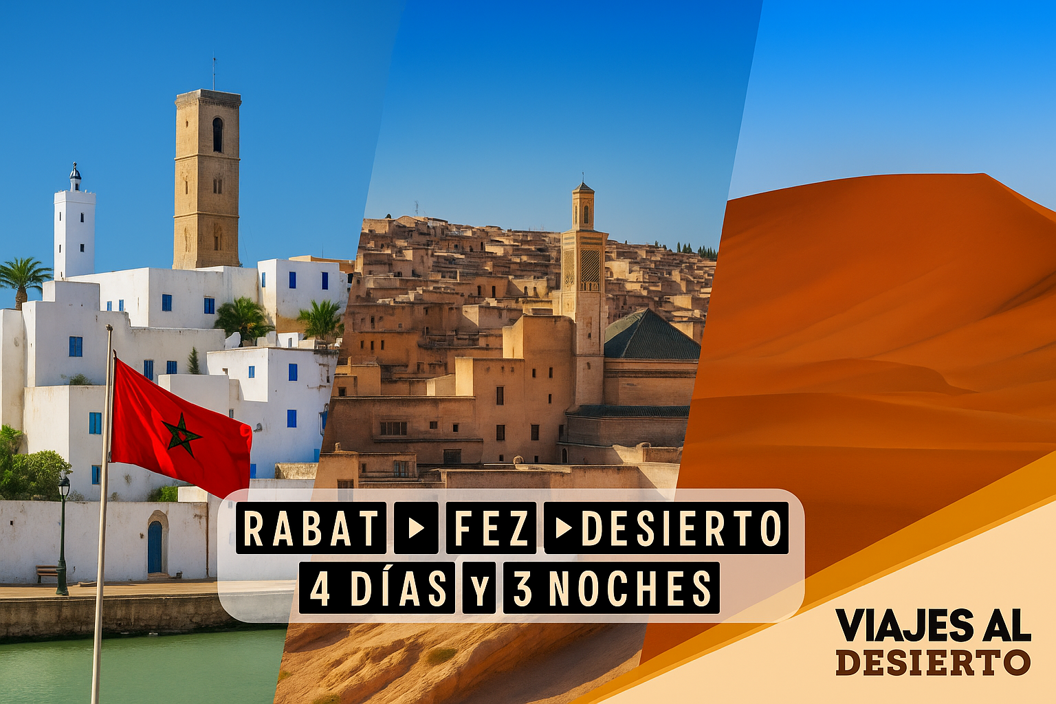 Embárcate en una aventura inolvidable desde la elegante ciudad de Rabat, capital de Marruecos, hasta las majestuosas dunas doradas del desierto de Merzouga. Este tour de 4 días combina historia, cultura y paisajes naturales impresionantes.
